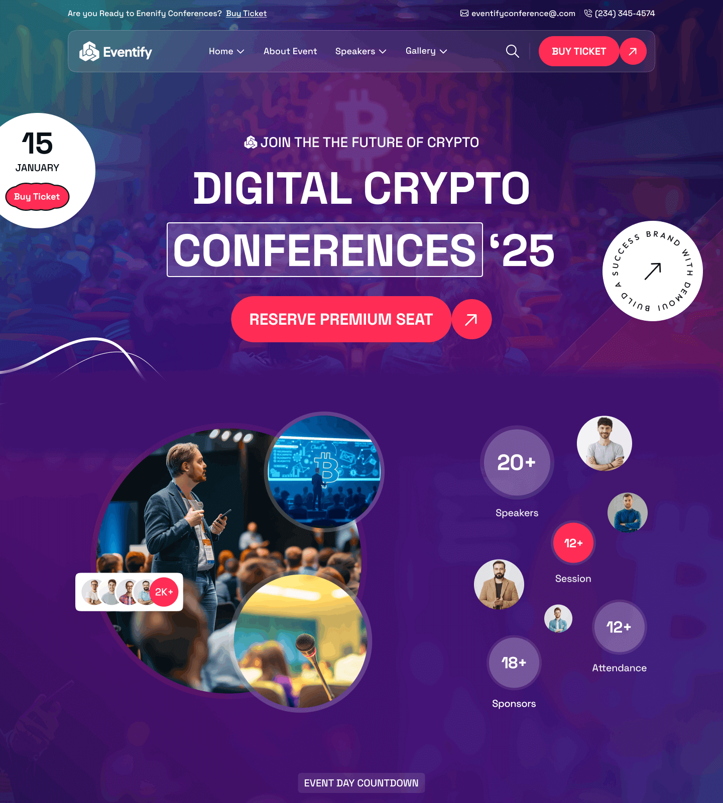 "Join us at Eventify 2024, where innovation meets opportunity. This conference is the ultimate destination for business leaders seeking to push the boundaries of an what's possible. With sessions on disruptive technologies, leadership trends, and market strategies, you'll walk away with the knowledge and connections to lead.